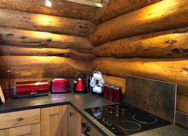 Traditional Canadian Log Cabin made from Scott Pine 3 bedrooms, open plan kitchen living area with log burning fire. Magical in Winter... Tranquil in Summer